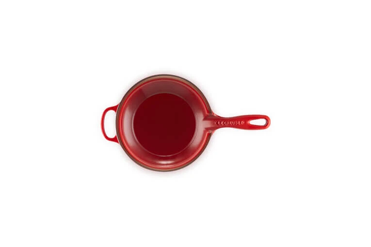 De kersrode 2-in-1 steelpan van Le Creuset heeft een diameter van 22 cm, een inhoud van 2,3 liter en is vervaardigd van geëmailleerd gietijzer. Door het gebruik van gietijzer is de steelpan geschikt voor alle warmtebronnen, inclusief inductie en de oven. De 2-in-1 steelpan is te gebruiken als steelpan voor het bereiden van soep en stoofgerechten, maar kan met deksel gebruikt worden om de smaken en het vocht goed in de pan te houden. Daarnaast is de deksel ook los te gebruiken als gietijzeren pan.
