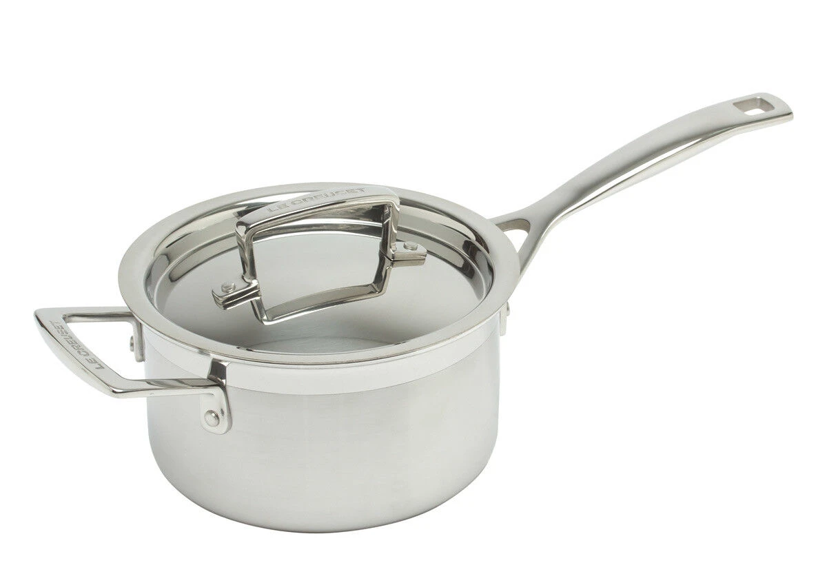 De inductiegeschikte Le Creuset Magnetik steelpan met deksel is van roestvrij staal, heeft een inhoud van 1,9 liter en een diameter van 16 cm. De pan heeft een aluminium tussenlaag, ingekapseld in roestvrij staal, die de warmte gelijkmatig geleidt van de bodem tot aan de rand. Tegenover de steel zit een greep om de pan gemakkelijk te kunnen verplaatsen.