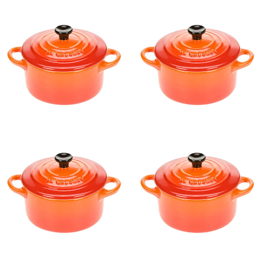 De ronde minipan van Le Creuset is gemaakt van oranje/rood geglazuurd aardewerk en heeft een diameter van 10 cm. Met een hoogte van 5 cm heeft het pannetje een inhoud van 200 ml en is geschikt voor het serveren van kleine gerechtjes. De pannetjes worden geleverd in een voordelige set van 4 stuks. Gebruik het Le Creuset minipannetje voor het bereiden en serveren van een tussengerecht, bijgerecht of verrassend dessert.