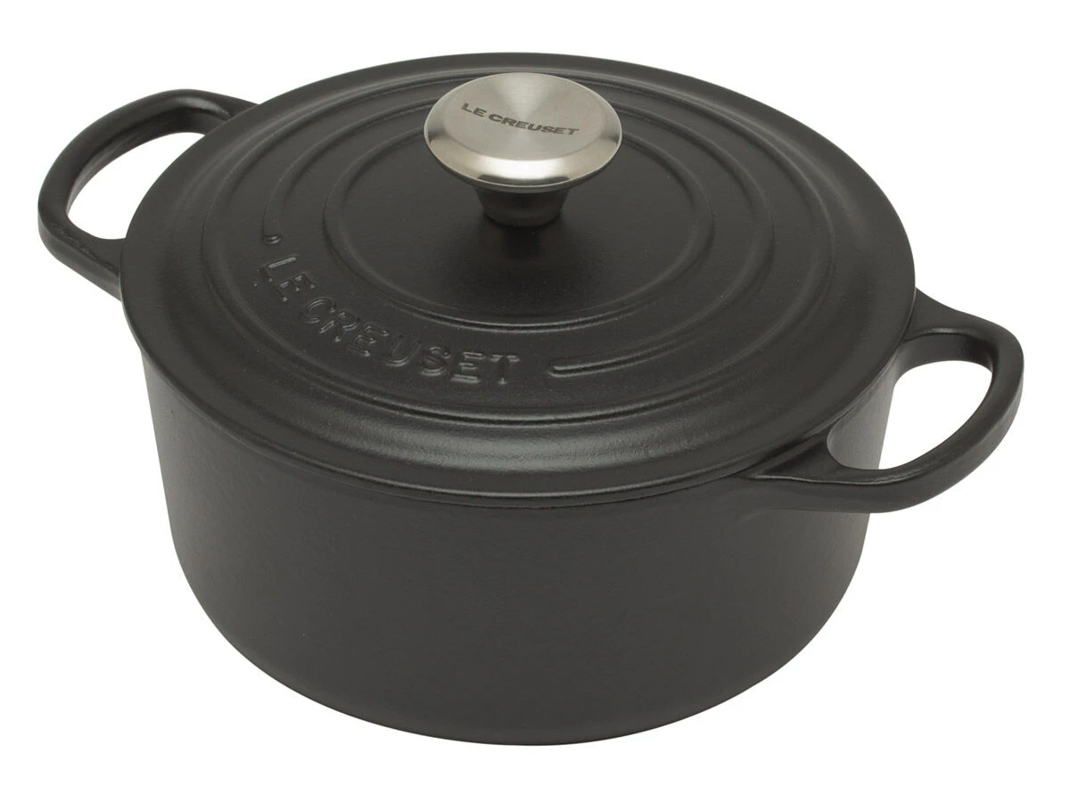 De matzwarte Signature braadpan van Le Creuset heeft een diameter van 18 cm. De ronde pan van geëmailleerd gietijzer heeft een inhoud van 1,8 liter, bedoeld voor 2 personen. De braad-/ stoofpan heeft extra grote grepen. De ronde vorm maakt de Signature braadpan geschikt voor soep en stoofgerechten als boeuf bourguignon.