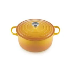 De Signature braadpan van Le Creuset in de kleur Nectar, geel heeft een diameter van 28 cm. De ronde pan van geëmailleerd gietijzer heeft een inhoud van 6,7 liter. De braad-/ stoofpan heeft extra grote grepen. De ronde vorm maakt de Signature braadpan geschikt voor soep en stoofgerechten als boeuf bourguignon.