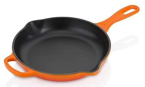 Hiermee onderscheid de skillet zich van de gewone koekenpannen van Le Creuset. Doordat ook de greep van gietijzer is gemaakt kan de pan niet alleen worden gebruikt op alle hittebronnen, inclusief inductie, maar is deze ook geschikt voor gebruik in de oven, onder de grill. In de pan kunt u behalve vlees bakken ook gerechten langer laten garen in de oven of gratineren.